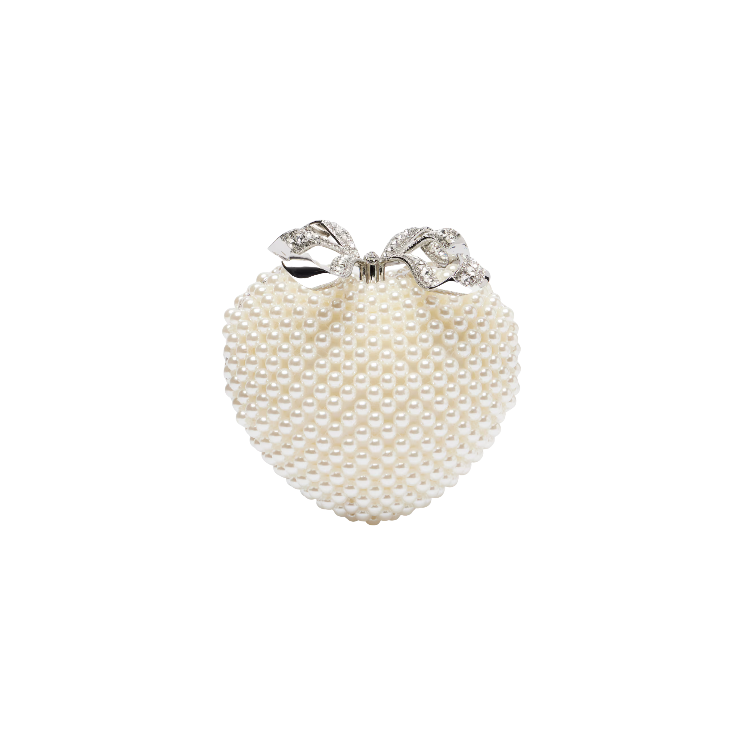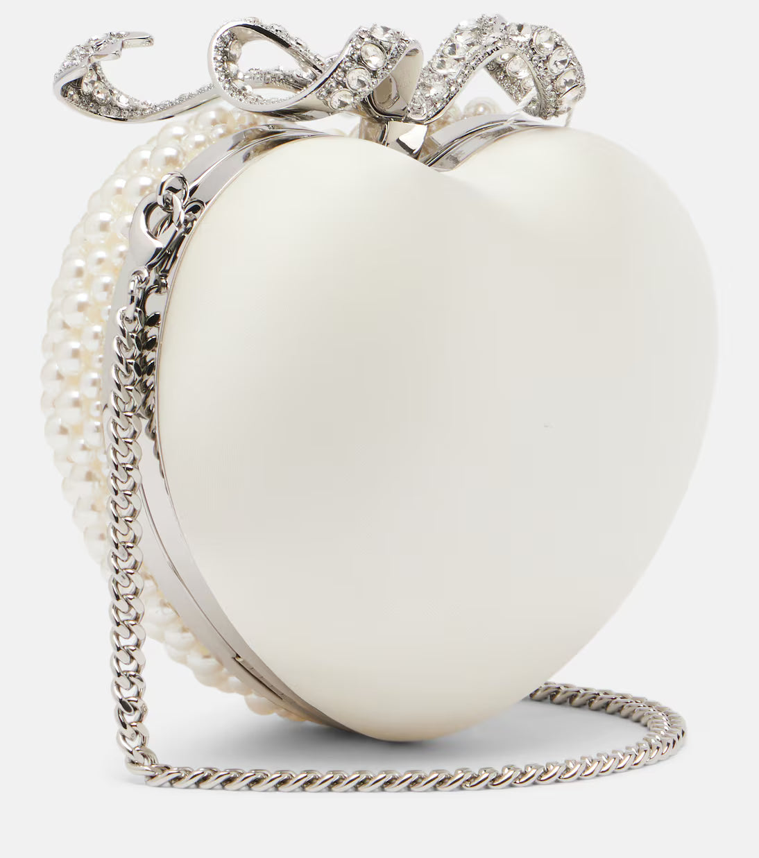 Playful meets opulent in the Self-Portrait Heart Clutch. Adorned with lustrous pearls and topped with an oversized crystal-encrusted bow, this sculptural heart-shaped bag is pure evening glamour. Compact yet striking, it’s the perfect finishing touch for romantic nights and special occasions.