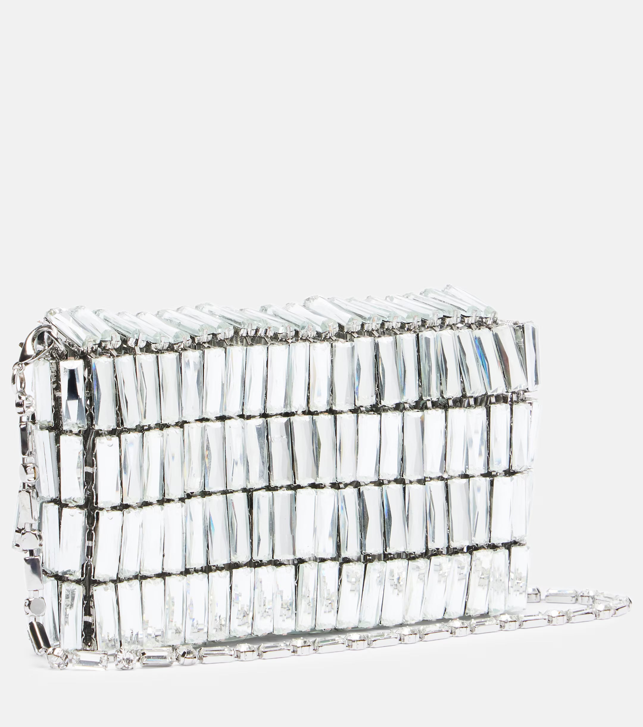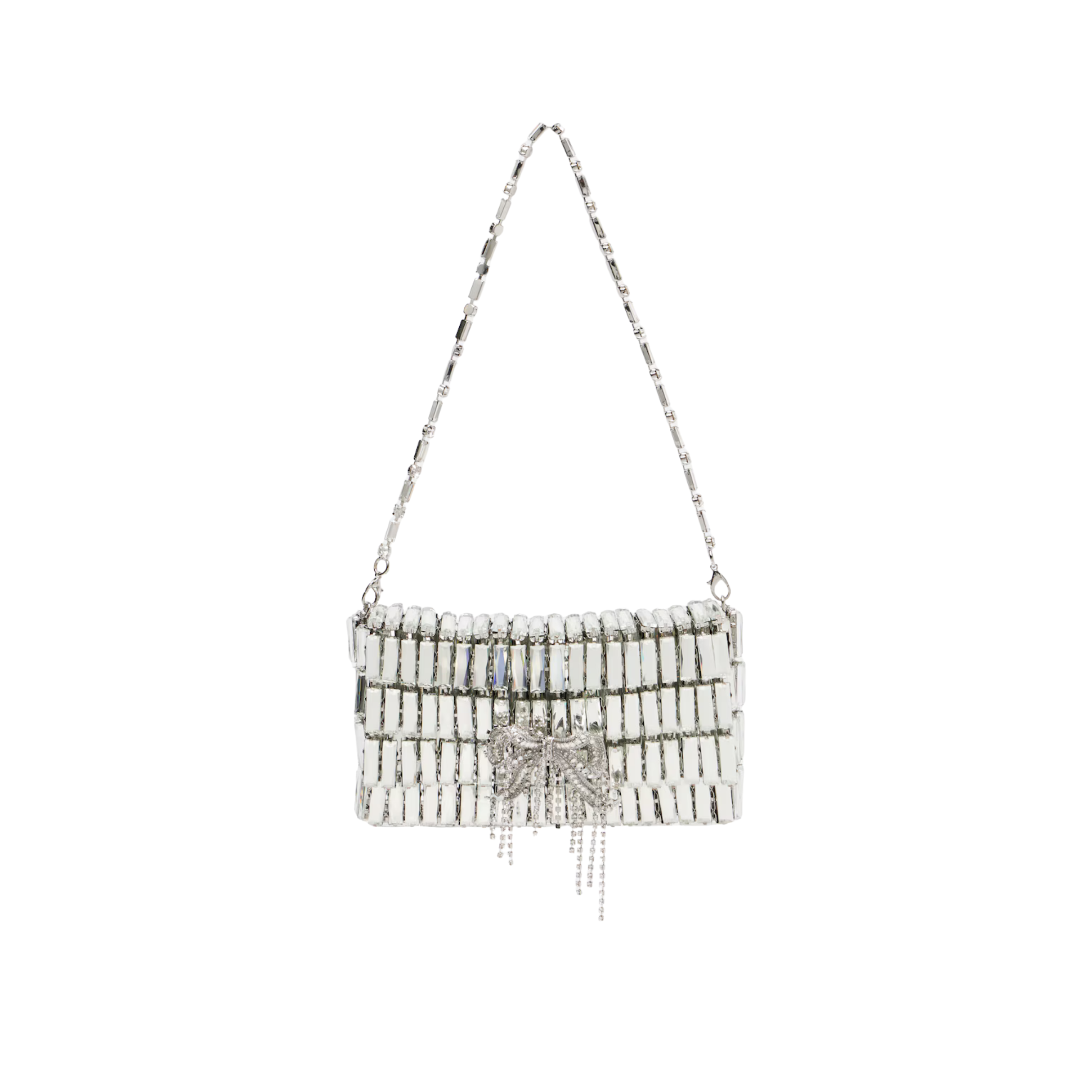The Self-Portrait Crystal Mini Bag captures pure evening glamour. Embellished with mirrored baguette crystals and finished with a cascading crystal bow, it’s the ultimate show-stopping accessory. Perfect for weddings, galas, and nights that call for a little extra sparkle.