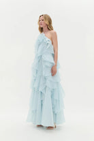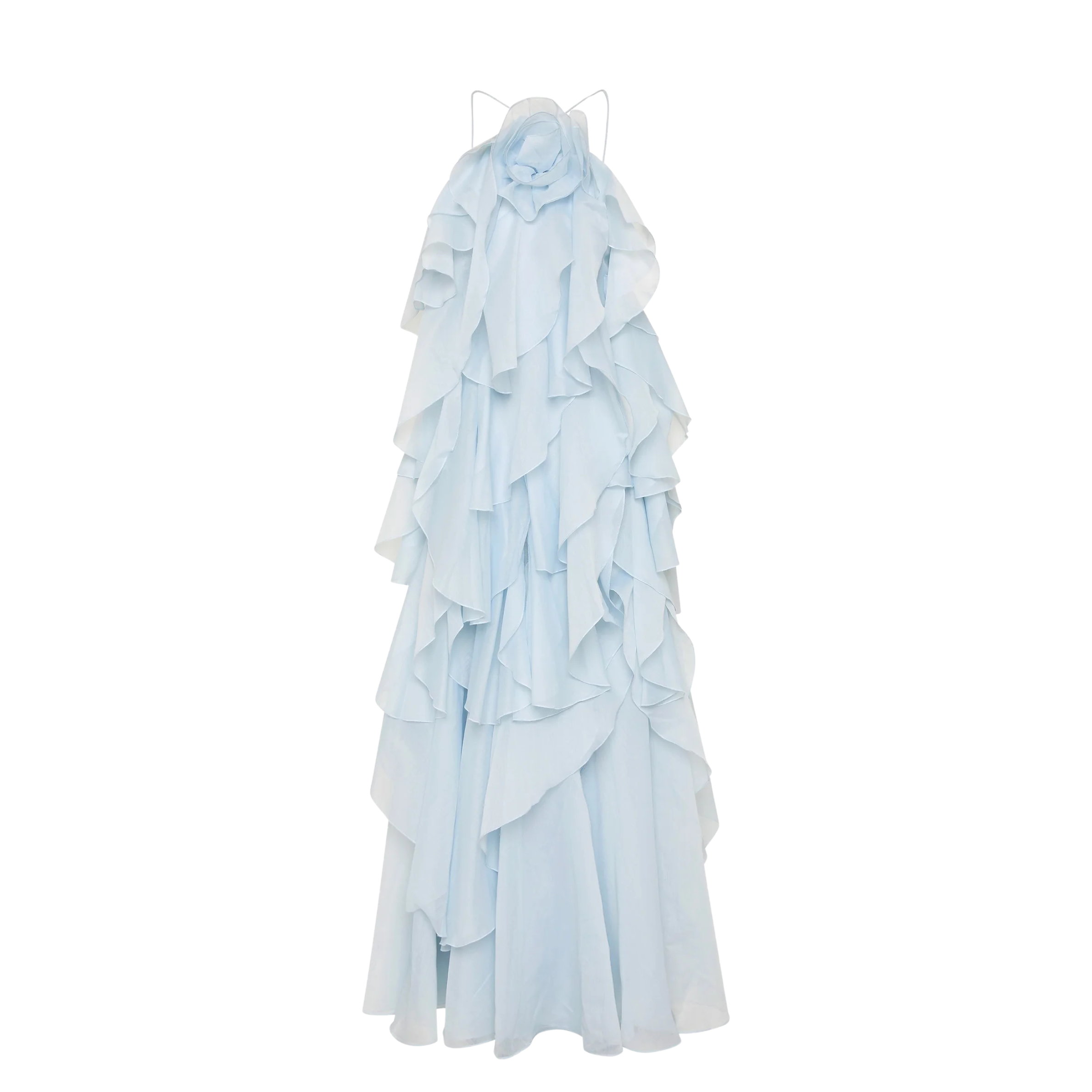 A sweeping cloud of soft blue organza, the Aje Pandorea Maxi floats with cascading petal layers and a sculptural rosette at the neckline. Its delicate straps and ethereal movement feel effortlessly romantic. Perfect for weddings, garden parties, black-tie events, and any occasion where a dreamy, modern gown steals the spotlight.