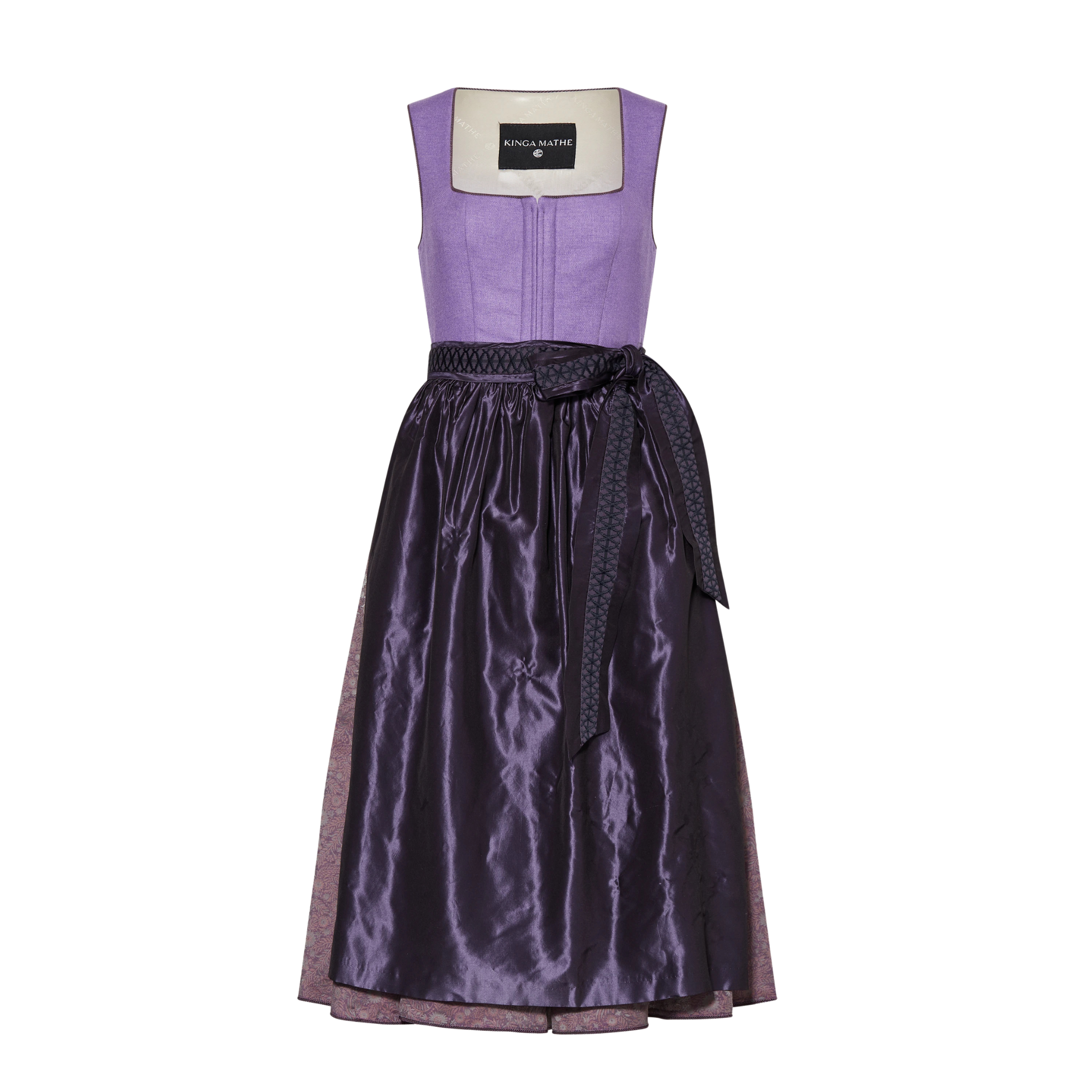 A timeless piece with a square neckline, boned bodice, and flared skirt, finished with piped edges and side pockets for modern ease. The look is elevated by a removable silk taffeta apron with embroidered waistband, while a full lining and petticoat ensure perfect shape and comfort.