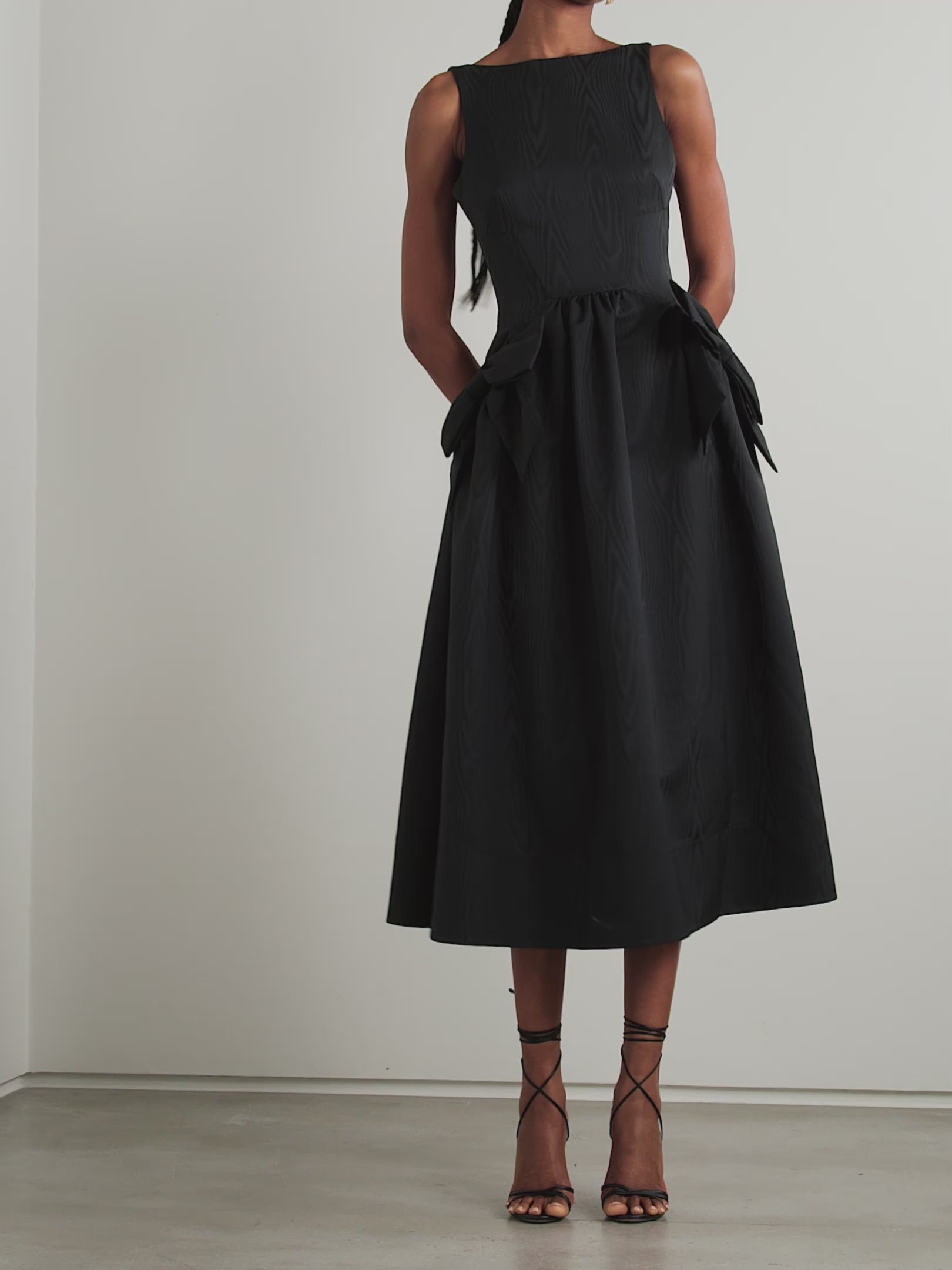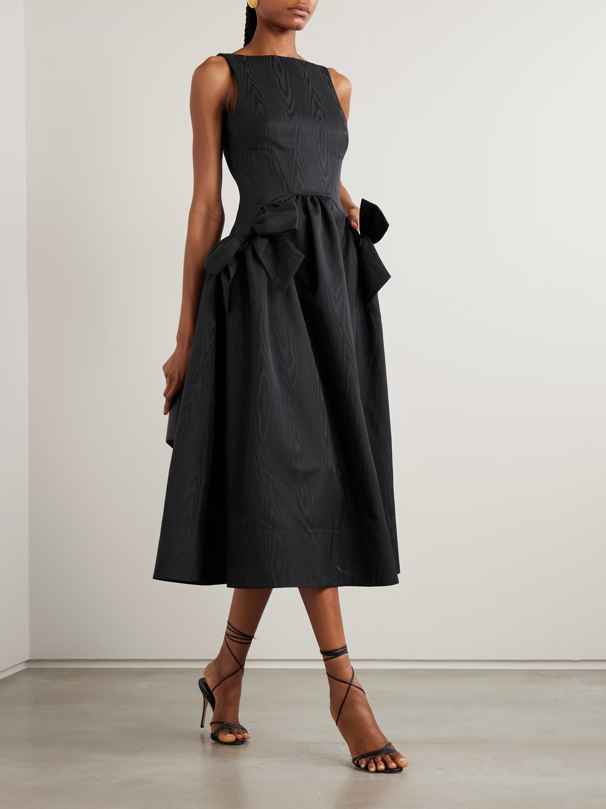 The Narcissa midi dress by Rebecca Vallance is polished, feminine, and impeccably structured. Crafted from lustrous moiré with soft gathering and a statement bow detail, it creates a sculpted silhouette with timeless appeal. Elegant yet impactful, it’s perfect for weddings, cocktail parties, formal dinners, engagement celebrations, and milestone birthdays.