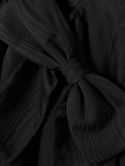 Style with classic heels and a refined clutch to complement the clean lines. Keep jewellery minimal — think pearl studs or delicate gold accents — and let the bow detail stand out. A sleek updo or softly brushed waves complete the look.