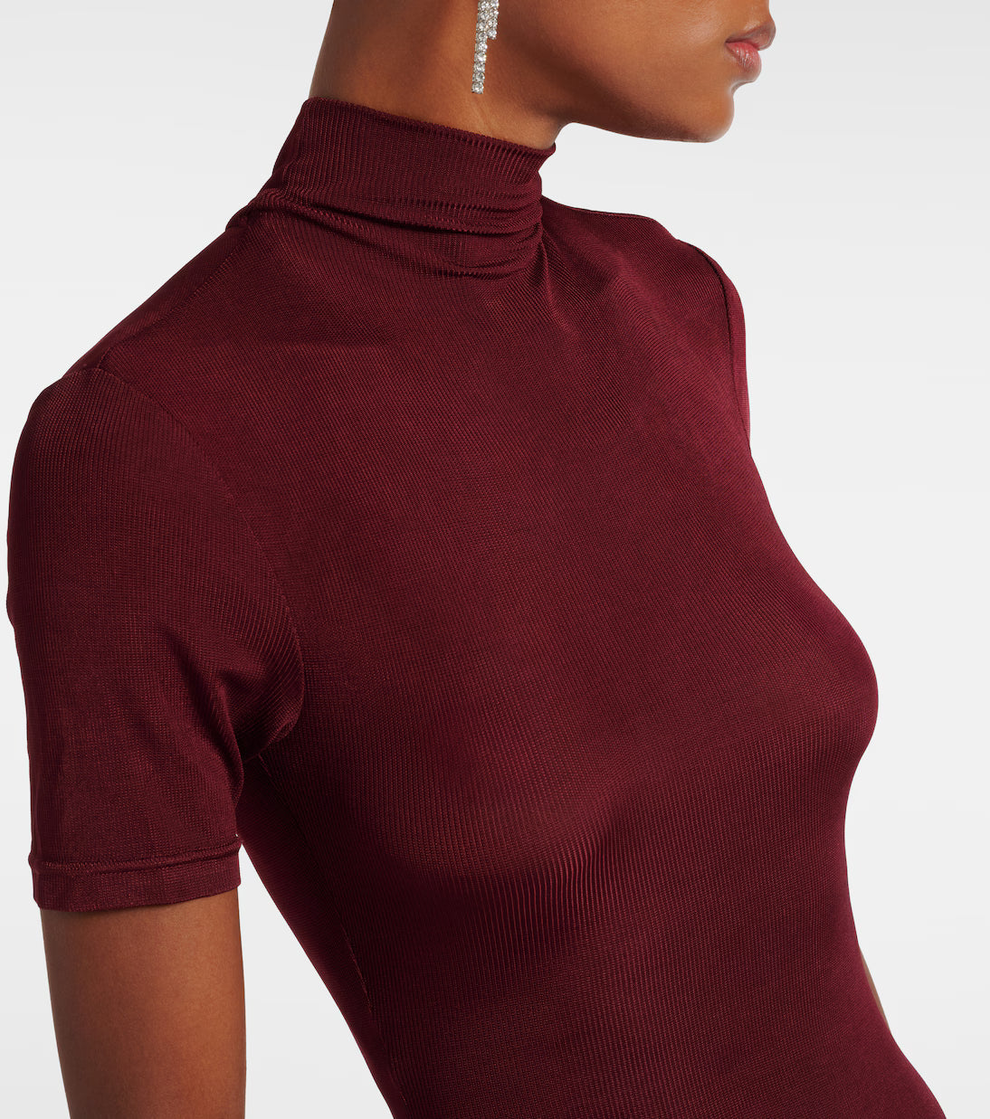 Minimalism with a twist, literally. Christopher Esber’s ribbed knit robe blends structure and sensuality with signature cut-outs and sculptural hardware that redefine modern elegance. Featuring a soft T-shirt-style top and a gathered front that flatters in all the right places, this piece is where comfort meets quiet allure.