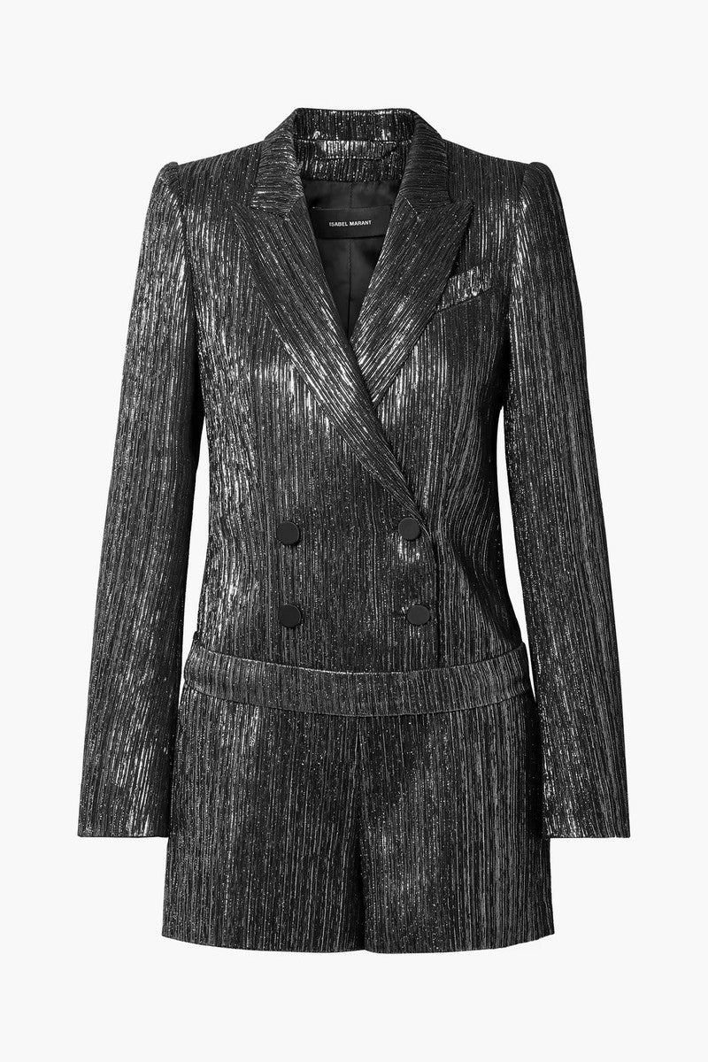 Turn heads in this striking metallic blazer mini dress. With structured shoulders, a tailored silhouette, and a shimmering silver finish, it blends boldness with sophistication—perfect for upscale evenings, red carpet events, or fashion-forward nights out.
