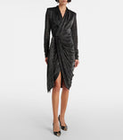 The Cleora wrap dress by Isabel Marant captures that signature Parisian cool, effortless, feminine, and a little daring. Cut in a flattering wrap silhouette, this midi cocktail dress moves with ease, sculpting the body while keeping it effortlessly chic. Its refined draping and modern edge make it a timeless piece for every occasion that calls for understated confidence.