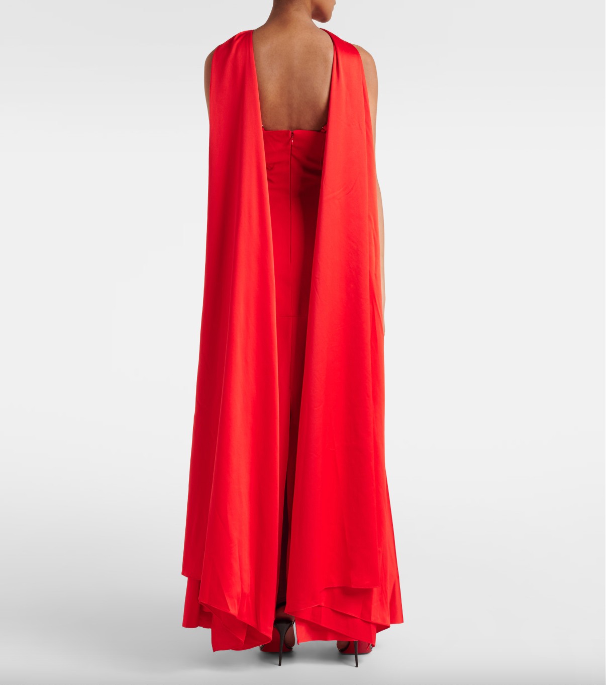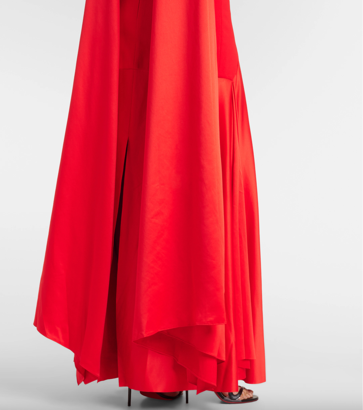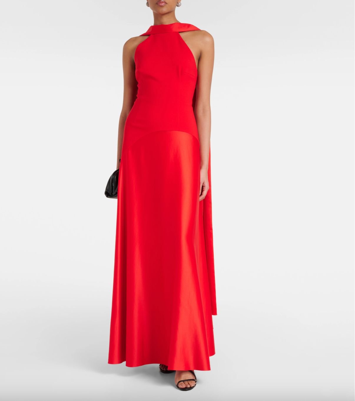 The Cece maxi dress from Solace London brings together a structured crêpe top and pairs it with a lustrous satin skirt. The design comes with a fluid scarf detail at the neck.
