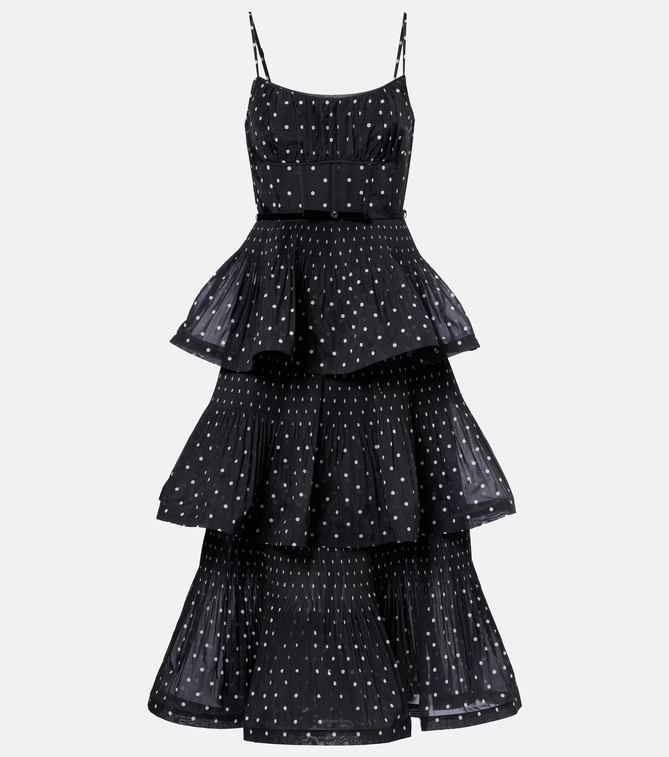 Special moments call for standout designs and this Zimmermann midi dress delivers just that. Adorned with a playful polka-dot motif, it features a stepped, pleated silhouette that moves beautifully with every step. An internal stick adds subtle structure, while the slim, detachable belt defines the waist for an effortlessly feminine fit.