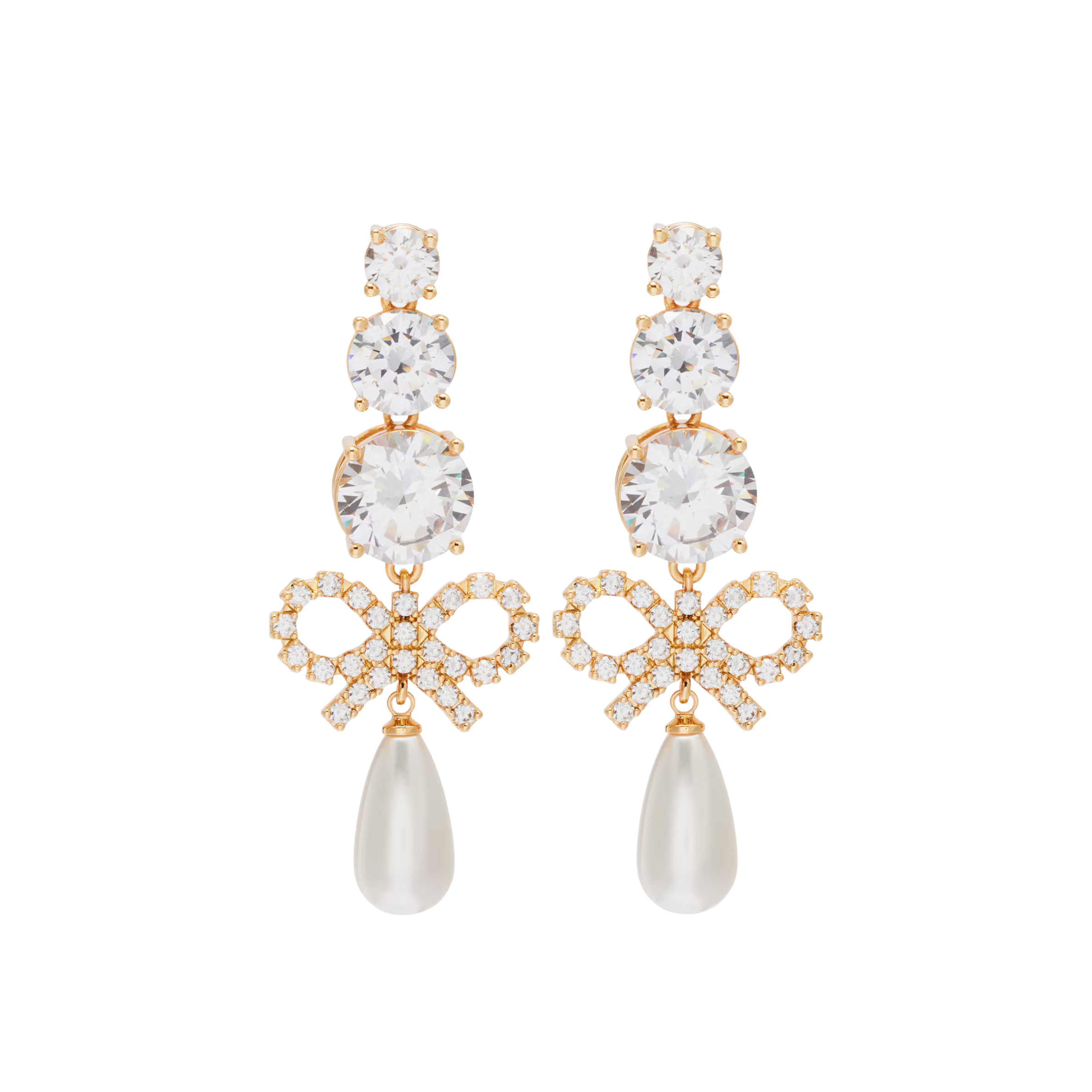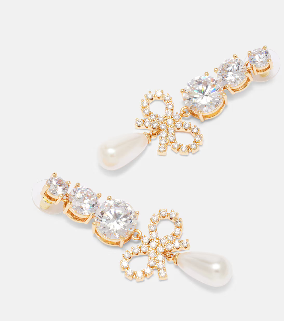 Romantic yet refined, Self-Portrait’s Bow & Pearl Earrings bring a touch of vintage charm to any evening look. A delicate crystal-studded bow meets a single teardrop pearl, framed by faceted stones that shimmer softly under light — timeless, feminine, and undeniably elegant.