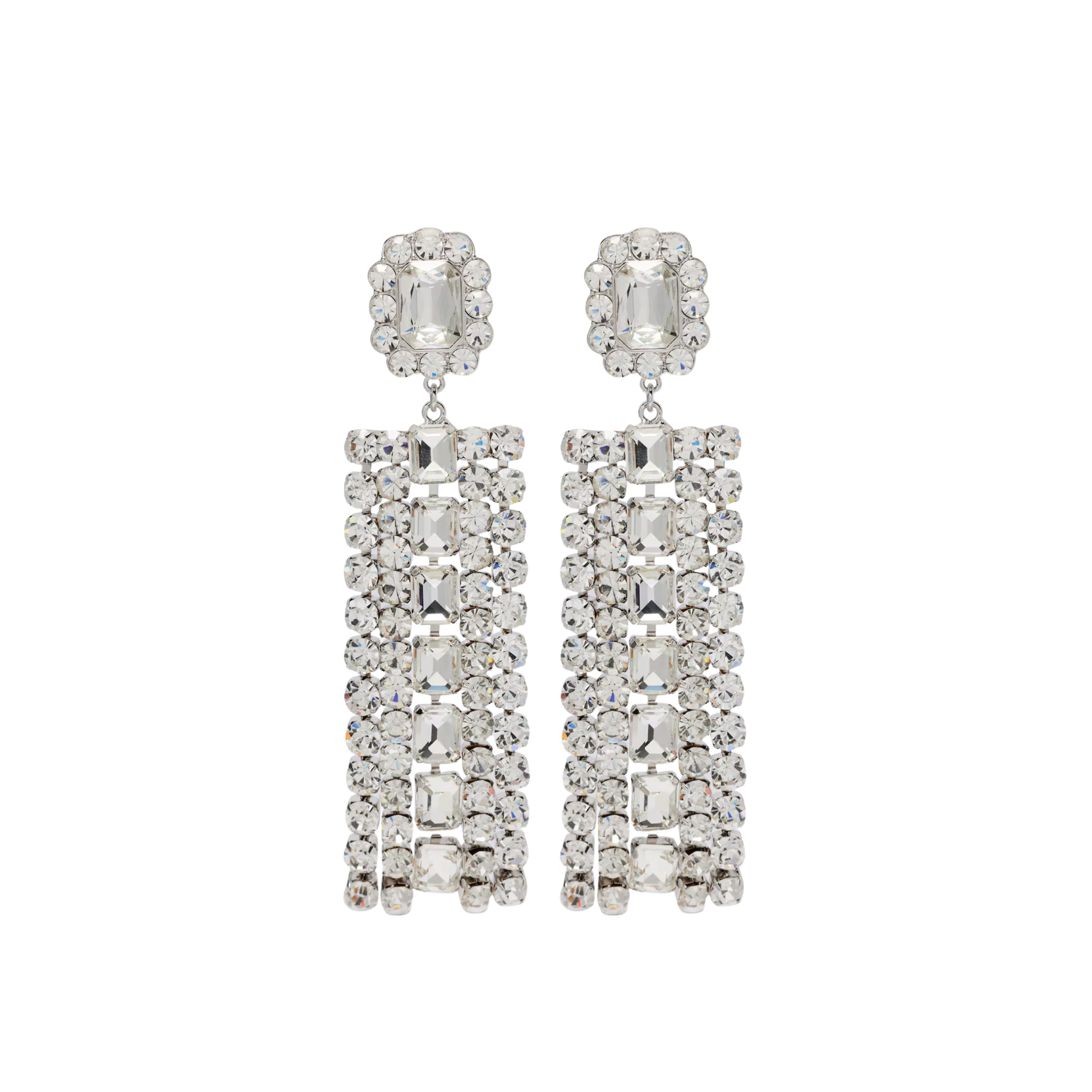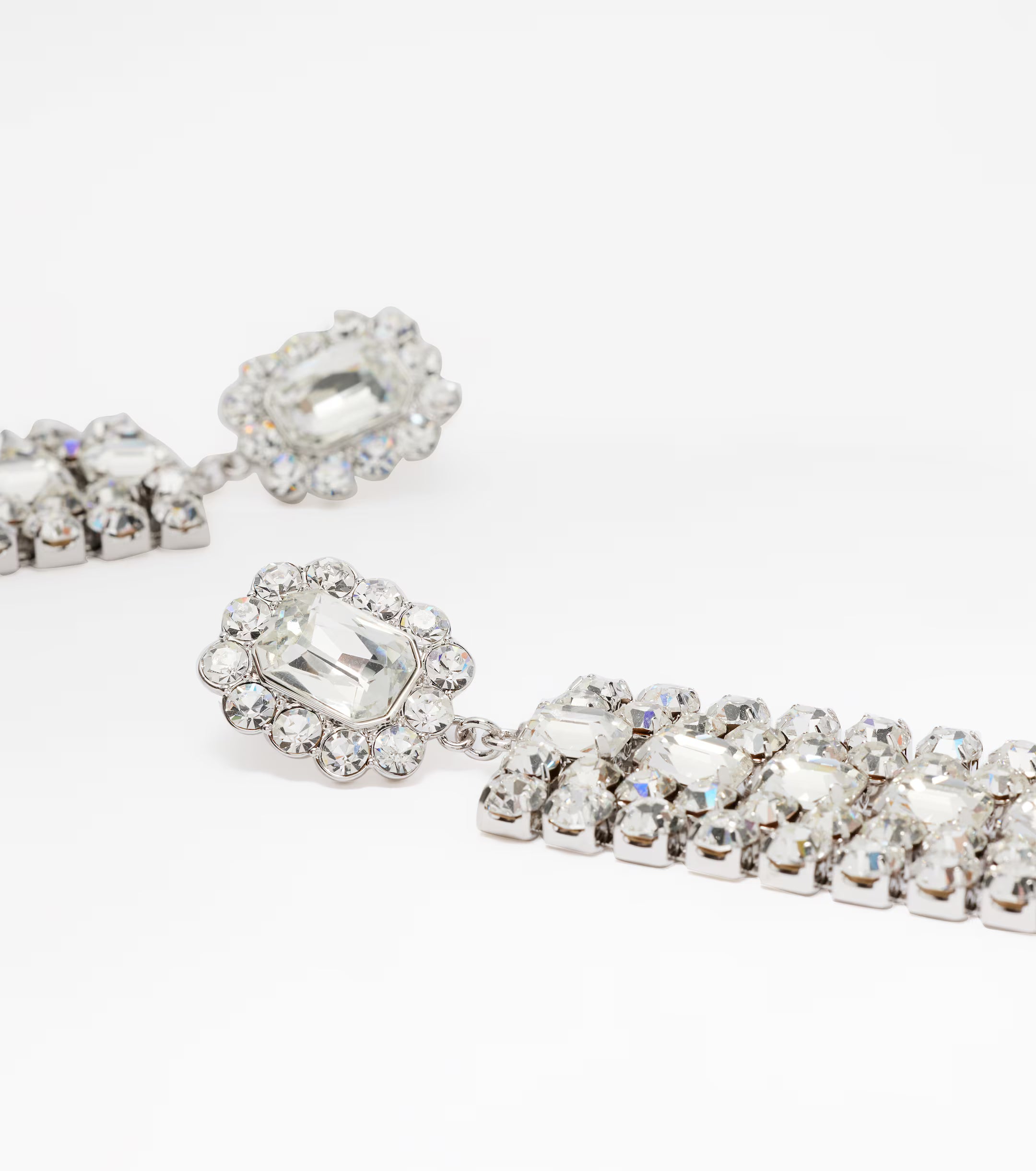 These Self-Portrait crystal earrings command attention from every angle. Crafted with cascading rectangular and round-cut stones, they balance vintage glamour with contemporary edge. A high-impact choice for evening events, they catch the light beautifully and add instant drama to any look.