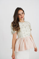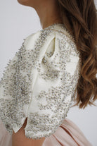 Made for unforgettable moments, this short-sleeve blazer pairs structured elegance with radiant hand-applied sequins. Its sleek silhouette offers modern sophistication, catching the light with every step.