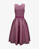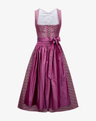 Midi dirndl with apron for women by LODENFREY Munich 1842 in magenta. The model has a traditional look thanks to the all-over floral design, while the shimmering apron made of high-quality silk sets fashionable accents. Classic details and bust darts round off the overall look with feminine charm.