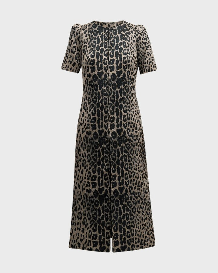 Bold meets polished in this Maison Common short sleeve coat, crafted in luxe leopard jacquard. With its tailored silhouette and rich texture, it brings a modern twist to timeless glamour—perfect for daytime events, elegant luncheons, or city soirées.