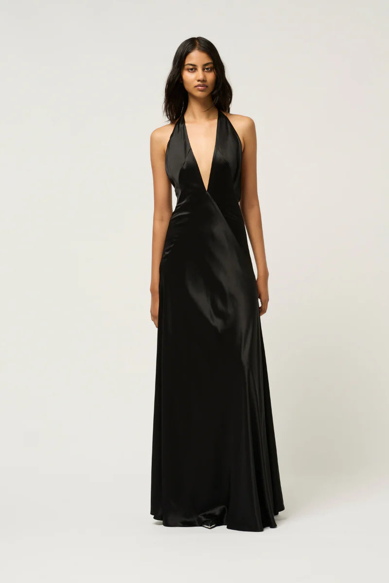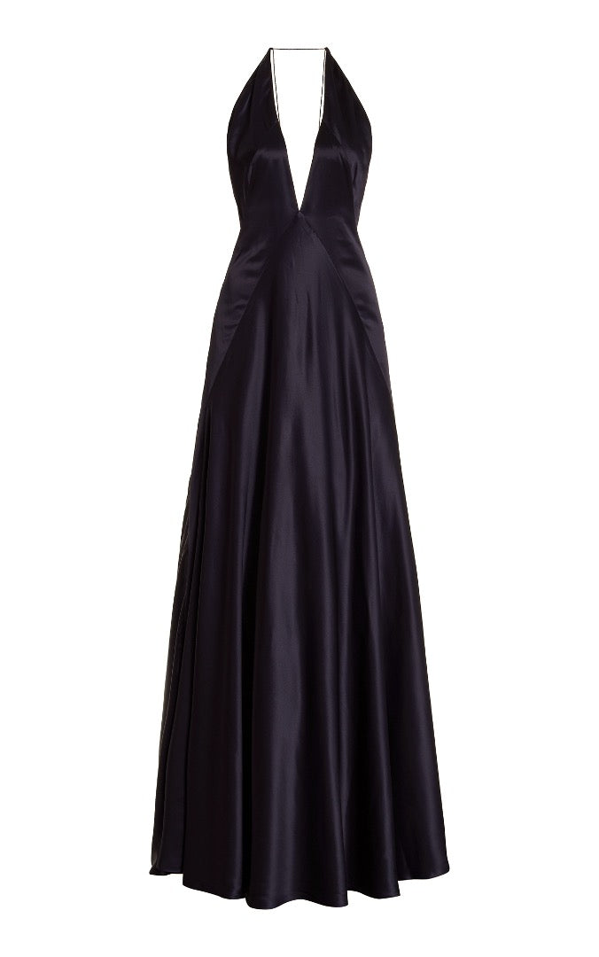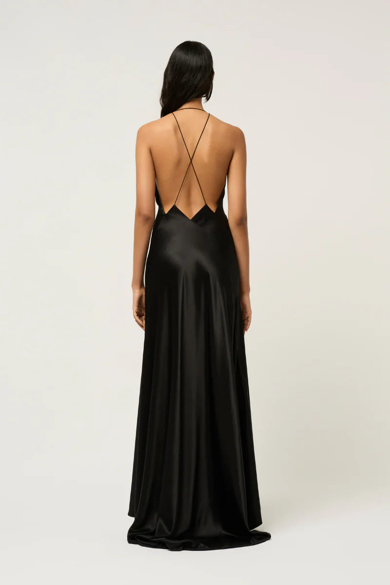 The simple, languid lines of Michael Lo Sordo's '007 Bond' gown make it the perfect choice for stylish woman that want something modern yet glamorous. This plunging style is made from liquid silk-satin that skims over your curves and has a leg-baring front slit to emphasize the fluidity of the fabric. The show-stopper is the elegant open back with crossover straps.