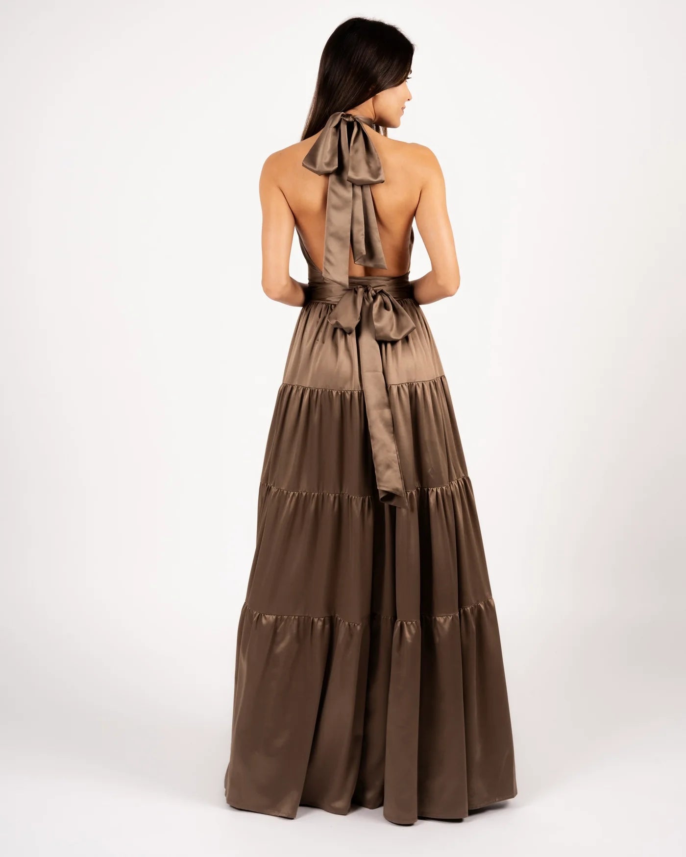 Boasting four layers of gathered satin-finish fabric that cascade with every step for an effortlessly beautiful flow.
