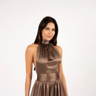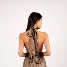 Elevate your confidence with our Nina Satin Halterneck Top, boasting a sleeveless and backless design.