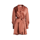 Exuding refined femininity, this Zimmermann dress in silk satin is a study in modern elegance. Designed in a romantic old-pink hue, the fitted silhouette is shaped with a graceful cache-cœur cutout and a fixed waistband that defines the figure. Long sleeves with discreet seam-zip closures add a touch of sophistication, while the fluid, slightly lustrous silk drapes beautifully with every movement. Unlined for an airy lightness, this piece blends effortless sensuality with timeless luxury, perfect for moments when subtle glamour speaks volumes.