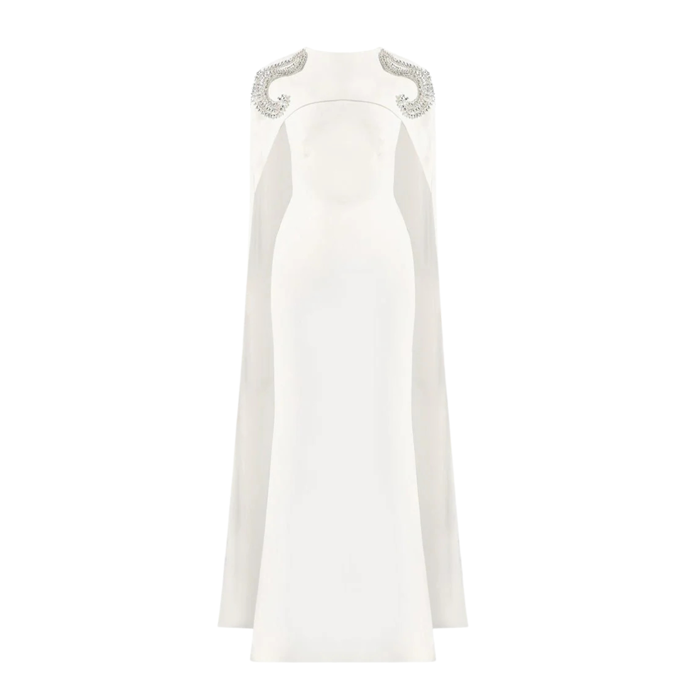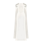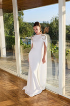 Designed for the modern bride, the Gigii’s Leatrice Dress is a study in refined bridal elegance. Crafted in crisp white with a sleek column silhouette, it features fluid cape sleeves and delicate crystal embellishment at the shoulders for a subtle statement. Perfect for wedding ceremonies, civil weddings, bridal receptions, engagement celebrations, and chic bridal dinners where understated sophistication shines.
