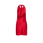 The playful design approach of the award-winning designer Norma Kamali has been inspiring the world since the 1960s. This satin mini dress features a deep halter neck and a figure-hugging silhouette.