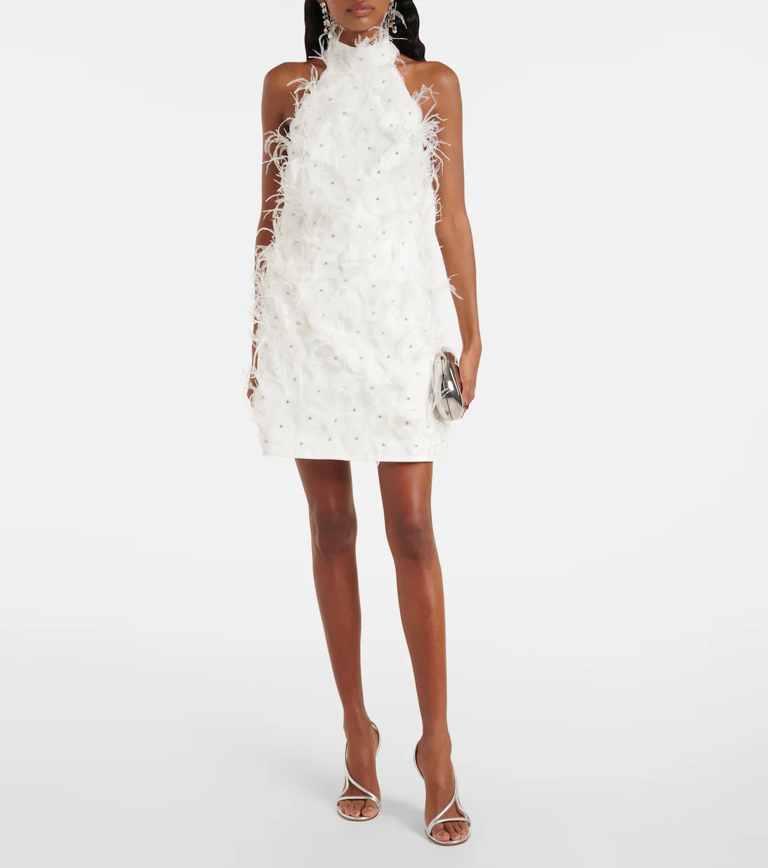 Radiate playful sophistication in the Rebecca Vallance Bridal Mini Dress Meha, a chic and modern take on bridal elegance. Crafted in pristine white, the halter neckline highlights the shoulders, while the feathered hem adds movement, texture, and a touch of whimsical glamour. Its flirty mini length and structured silhouette make it a statement piece for contemporary brides or guests who want to shine at memorable celebrations.