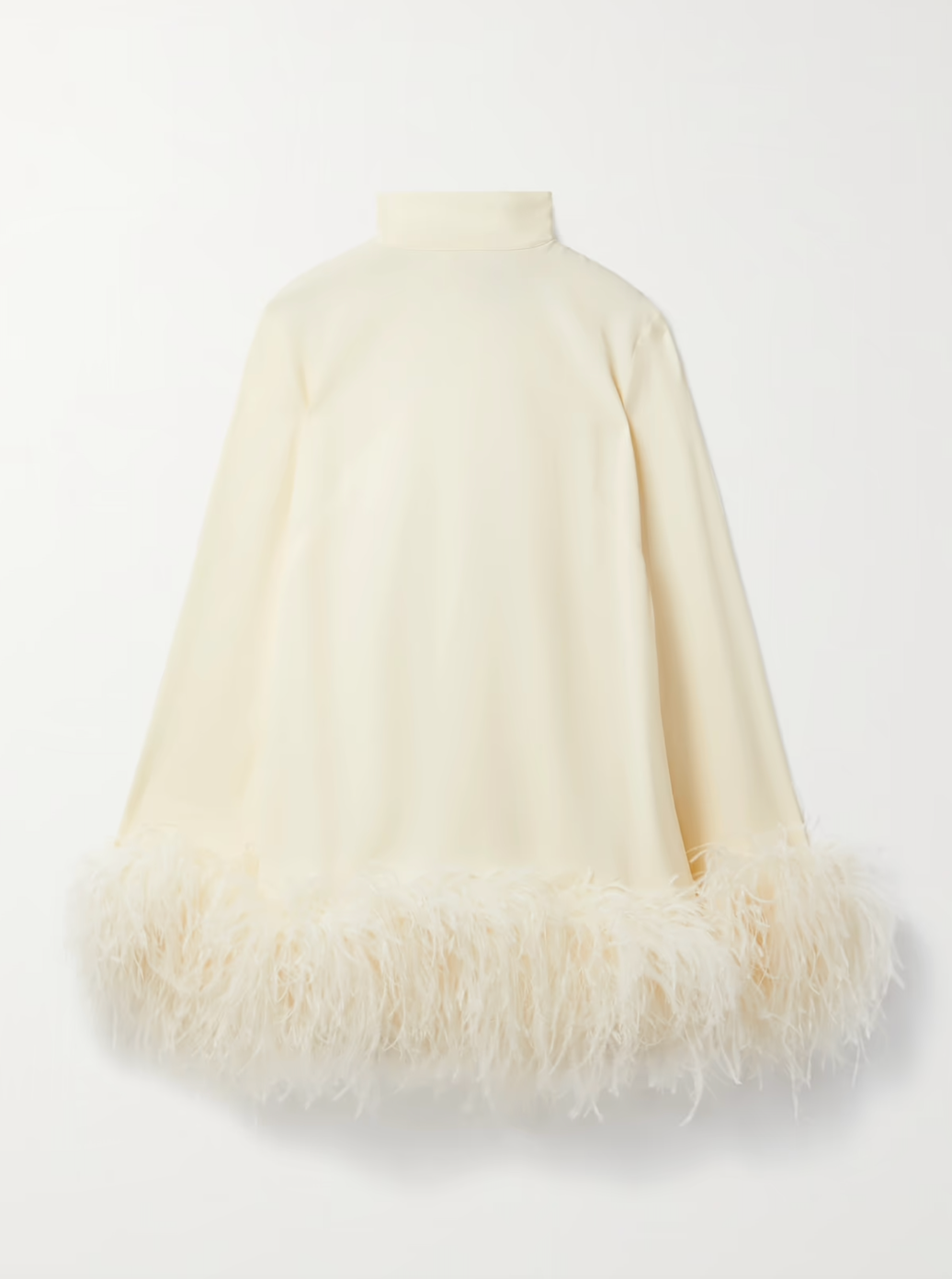 Playful elegance meets bold design in the Gina dress by Taller Marmo. Crafted in ivory crepe and trimmed with tonal ostrich feathers, this mini silhouette is both chic and statement-making. Perfect for cocktail parties, rooftop soirées, or modern bridal moments.