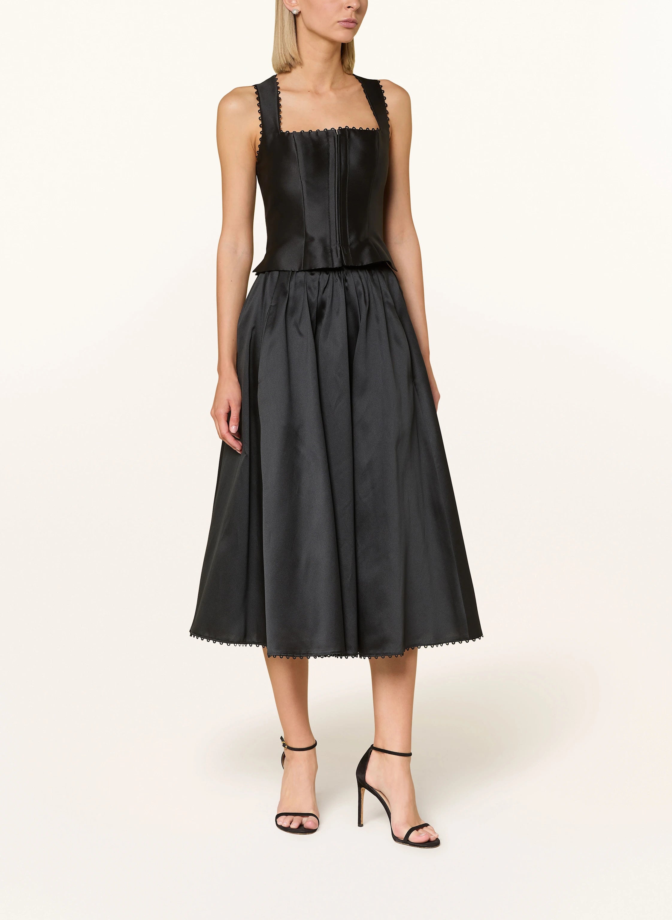 This exclusive two-piece dirndl set from the Kinga Mathe x Füsun Lindner capsule collection features a luxurious skirt and matching corsage in black. The skirt has two side pockets, and elegant piping along the hem. Paired with the beautifully structured corsage, featuring a front hook closure, this set is a modern take on timeless tradition. The pieces can be worn together as a set or styled separately for more versatility. Additional aprons and various dirndl blouses can be added to create a more traditional look (not included).