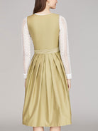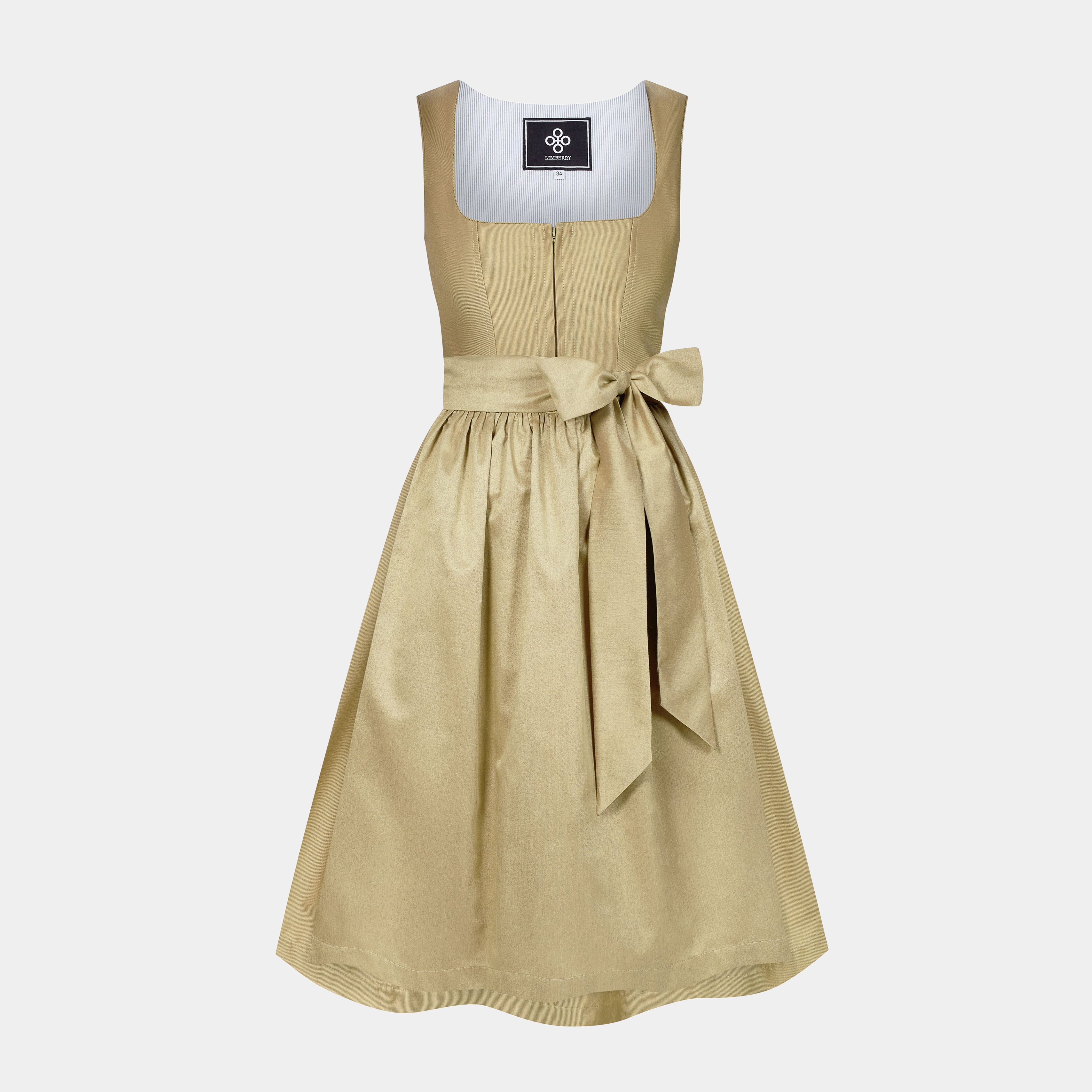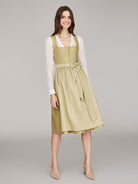This elegant dirndl in a muted sage hue is the definition of effortless sophistication. Crafted from high-quality fabric with a subtle sheen, it offers a structured yet comfortable fit that beautifully shapes the waist and flatters every silhouette. The sleek front zipper keeps the design modern and minimal, while the matching sash at the waist adds a soft, feminine touch without overwhelming the look.