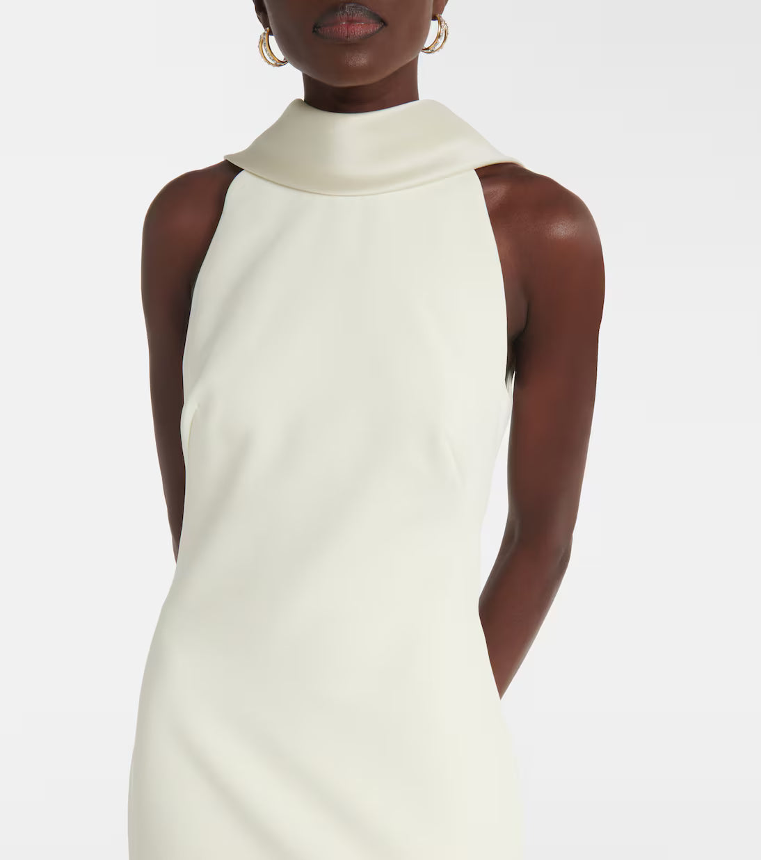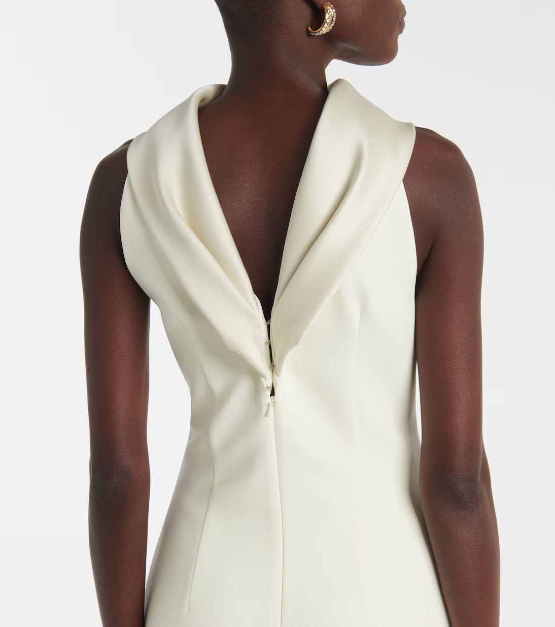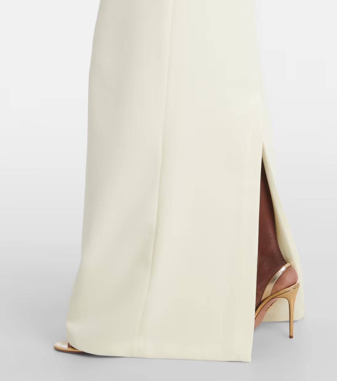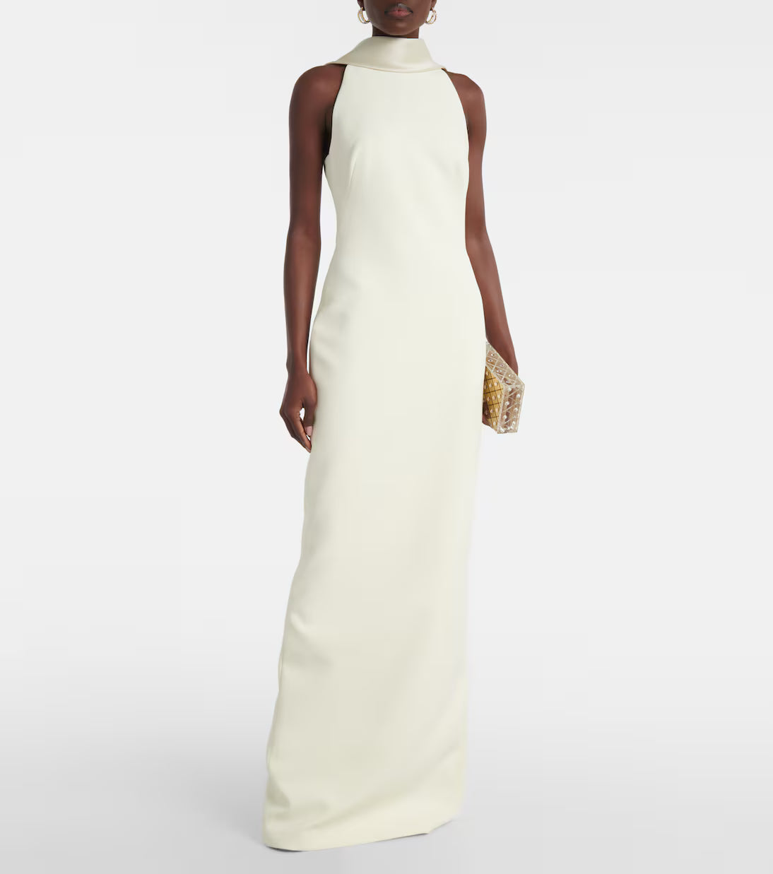 Radiate timeless elegance in the Safiyaa ‘Holliana’ gown. Crafted from luxurious crepe with satin detailing, this exquisite piece in a soft sorbet hue, a delicate ivory tone, embodies pure sophistication. The flawless tailoring and fluid drape highlight the brand’s signature modern femininity, creating a look that’s both refined and effortlessly graceful.