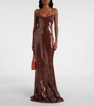 Bet on the sensual creations of The New Arrivals Ilkyaz Ozel with a striking touch. This sensational robe presents itself in chocolate brown and has been completely set with shimmering sequins.